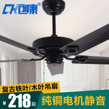 创康家用客厅无灯吊扇复古静音木叶家用工业吊扇电风扇餐厅吊扇