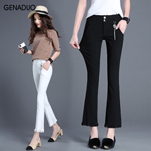 2017春夏季新款牛仔喇叭裤女九分裤子修身阔腿流苏毛边显瘦微喇裤