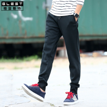纯棉运动裤男夏季薄款休闲长裤男士大码卫裤收口小脚学生跑步裤子