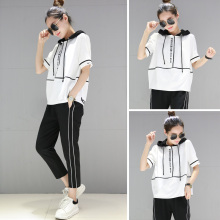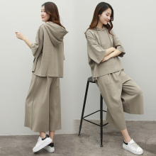 阔腿裤套装女2017夏装新款韩版显瘦连帽上衣七分裤时尚两件套女装
