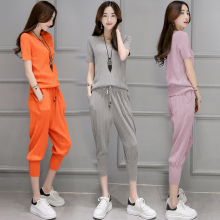 2017春装新款韩版针织两件套潮哈伦裤七分裤时尚休闲运动套装女装
