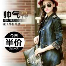 欧美2015秋装新款女装单排扣修身牛仔外套女春款长袖女士牛仔衣潮