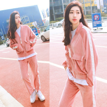 运动套装女春秋2017新款春装韩版时尚显瘦棒球服女装休闲三件套潮