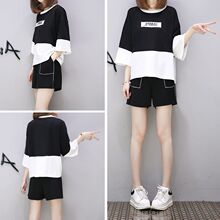 欧洲站2017夏装新款运动休闲套装两件套女松紧腰短裤七分袖春夏潮