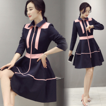 2016春装新款韩版女装修身A字裙中长款长袖打底裙时尚连衣裙显瘦