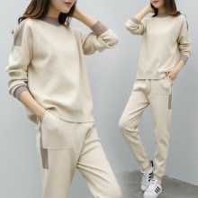 2017春装新款韩版宽松显瘦时尚套装圆领气质休闲百搭针织两件套女