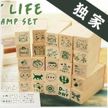 韩国创意文具快乐生活精装原木盒装可爱方形印章儿童玩具印章