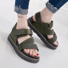 2017夏季新款韩版系带鱼嘴鞋松糕厚底防滑学生凉鞋露趾一字扣带鞋