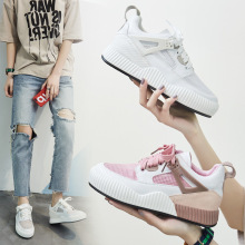 2017春季新款厚底小白鞋女秋韩版真皮百搭松糕鞋魔术贴内增高女鞋