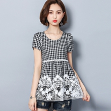 衬衫女短袖韩范纯棉2017春夏新款大码宽松显瘦百搭刺绣拼接衬衣女
