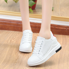 小白鞋女韩版百搭内增高运动鞋夏季透气镂空系带休闲鞋厚底女鞋潮