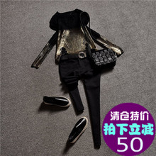 欧洲站2016冬装欧货潮时尚个性新款女装亮片套头毛衣牛仔裤子套装