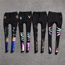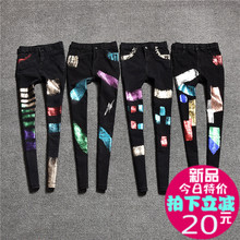 欧洲站2017春装欧货潮时尚新款个性烫金牛仔裤小脚裤铅笔裤女裤子