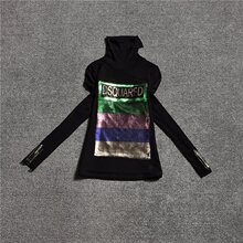 欧洲站2016冬装欧货潮时尚个性新款女装烫金高领修身加绒打底衫女
