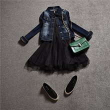 欧洲站2017春装欧货新款女装潮时尚牛仔外套蓬蓬裙打底连衣裙套装