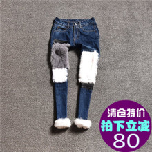 欧洲站2016秋冬装欧货潮裤时尚新款个性毛毛休闲牛仔裤显瘦女裤子