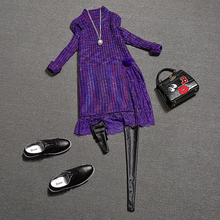 欧洲站秋装女潮2016新款欧货时尚七彩印花针织毛衣蕾丝打底裤套装