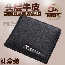 七匹狼钱包 男士真皮横款头层牛皮短款钱夹商务男包包潮皮夹 正品