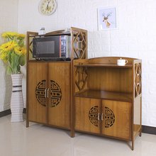 楠竹置物架对开门微波炉架实竹烤箱架雕刻双门储物柜玄关收纳柜子