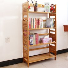 鑫凯之源楠竹雕刻书架实心简易架书柜收纳架落地置物架学生竹书架