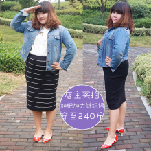 大码女装胖MM秋夏装韩版条纹针织包臀裙半身裙中长裙打底裙200斤