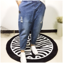 大码女装牛仔裤女夏胖mm潮韩版破洞牛仔裤哈伦9分裤子喷墨宽松200