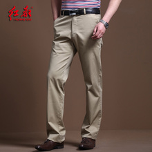 红都男裤夏装簿款中老年男士休闲裤男装抗皱商务直筒中年休闲裤男
