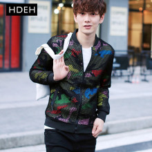 春秋季新品韩版修身夹克男外套迷彩镂空网衣青年学生潮流上衣大码