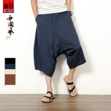 低裆垮裤七分裤男士短裤中国风男子夏季裤子亚麻棉休闲裤大码唐装