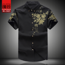【天天特价】夏季刺绣花衬衫男士短袖衬衣中国风加肥加大码潮牌胖