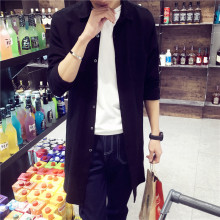 亚麻棉麻衬衫男士春秋装中长款寸衣潮胖衣服夏加肥加大码男子衬衣