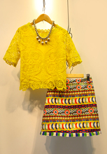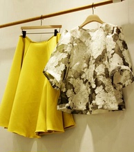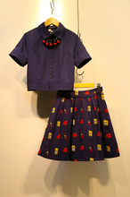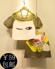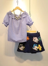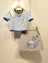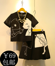 17夏季新款韩版卡通贴布刺绣上衣+A字廓型半身裙时尚两件套装裙女