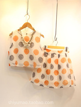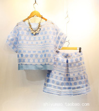 韩版精品117夏新款女欧美时尚波点印花欧根纱上衣+荷叶边短裤套装