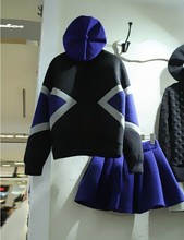 东大门春秋装新品休闲运动加厚抓绒两件套裙套头宽松长袖撞色卫衣