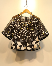 2017春夏季新款韩版女装 网纱拼接菱格数码印花上衣圆领短袖T恤女