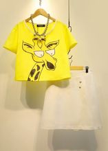 17夏季新款韩版卡通小鹿印花短袖上衣+纯色半身裙套装裙连衣裙女