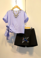 17夏季新款韩版猫咪刺绣上衣+不规则拼接阔腿裤裙时尚套装裙女夏