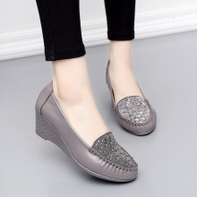 2017春夏新款中年女鞋真皮女式单鞋低跟防滑鞋圆头坡跟妈妈鞋皮鞋