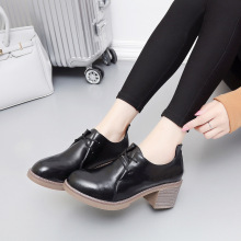 2017春季新款真皮女单鞋中跟系带女鞋英伦风小皮鞋女粗跟低帮鞋子
