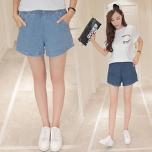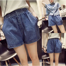 2016夏季韩版潮新款松紧腰胖mm加大码加肥阔腿宽松牛仔裤女短裤子