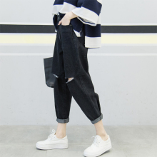宽松牛仔裤女秋季韩版潮学生bf风百搭哈伦裤胖mm显瘦破洞九分裤