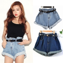 韩版复古牛仔裤短裤夏卷边显瘦高腰阔腿裤学生松紧腰热裤宽松女裤