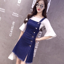 韩版2016春季新款女装吊带连衣裙高腰牛仔背带裙女夏季学生短裙潮