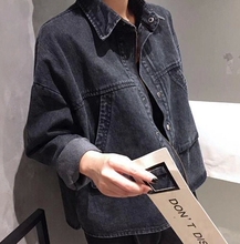 外套女装2016新款韩国复古学院风黑色宽松超百搭翻领长袖牛仔外套