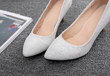 婚鞋细跟尖头女单春夏新娘结婚纱礼服中跟成人礼宴会主持金银白色