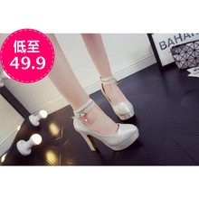 12公分超高跟绑带婚鞋大红色蕾丝新娘礼服旗袍女单2016春季新款