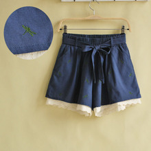高中女生夏裤初中学生蕾丝花边短裤宽松紧腰大码胖夏季少女裤薄款