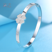 简法四叶草手镯镶嵌镯子女简约韩国情侣银镯子饰品刻字送女友