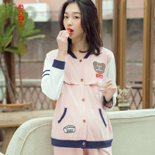 孕妇睡衣春夏纯棉薄款可外穿韩版哺乳期坐月子服全棉长袖三件套装