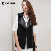 卡玛KAMA 2017春秋款女装 立体剪裁黑色拼接个性女马甲7315950